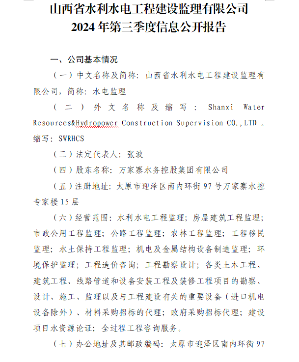 山西水利建設開發咨詢有限公司2024年第三季度信息...