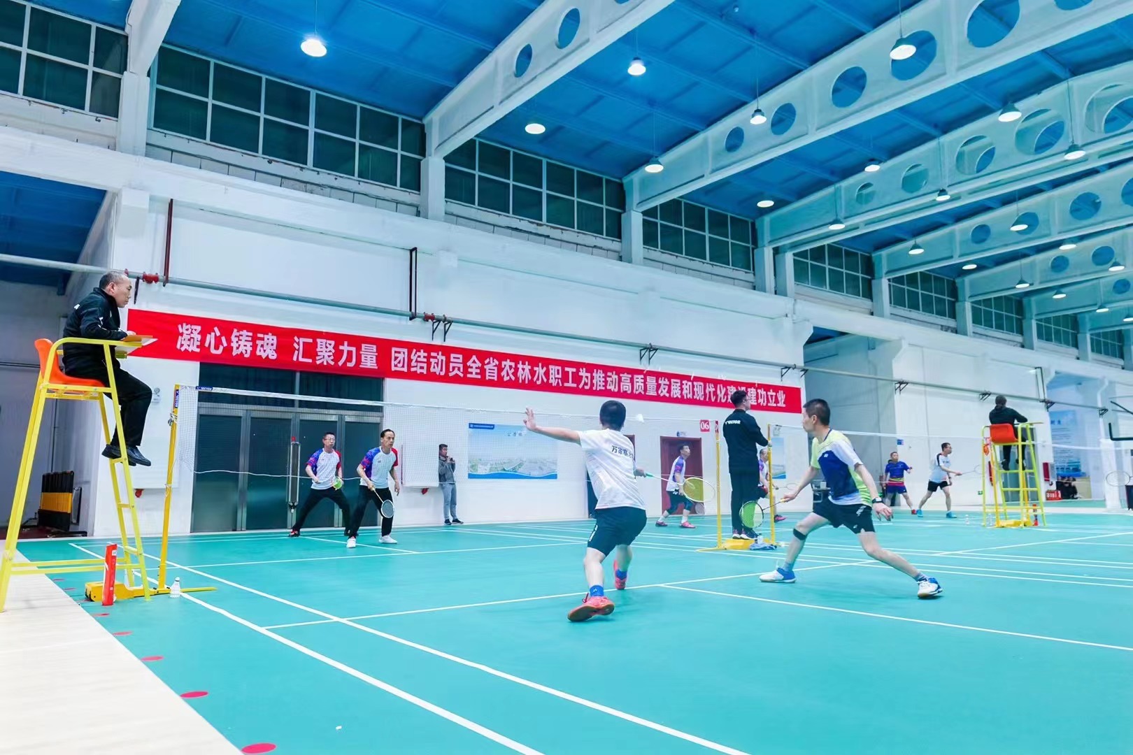 4月28日至30日,“中國(guó)夢(mèng)?勞動(dòng)美——永遠(yuǎn)跟黨走 奮進(jìn)新征程”全省農(nóng)林水系統(tǒng)職工系列體育賽事在萬(wàn)家寨水控集團(tuán)職工活動(dòng)中心舉行。省農(nóng)林水工會(huì)主席馬孝主持開(kāi)幕式,集團(tuán)公司黨委專(zhuān)職副書(shū)記、副董事長(zhǎng)、工會(huì)主席范世平致辭。省農(nóng)林水工會(huì)副主席、女工委主任張建苗,副主席郭睿婧,集團(tuán)工會(huì)負(fù)責(zé)人參加。